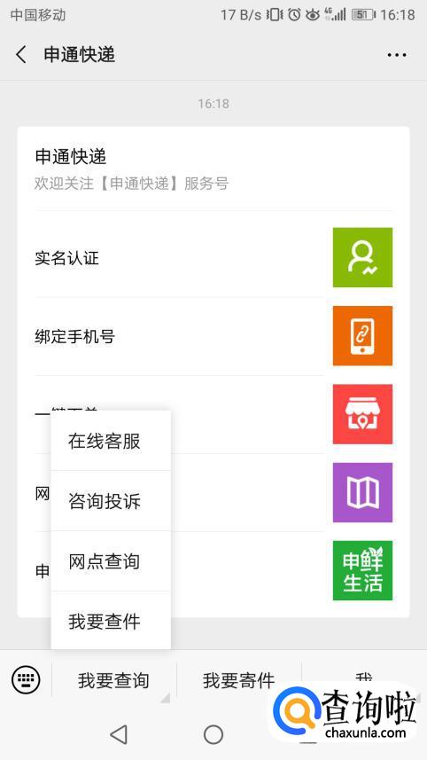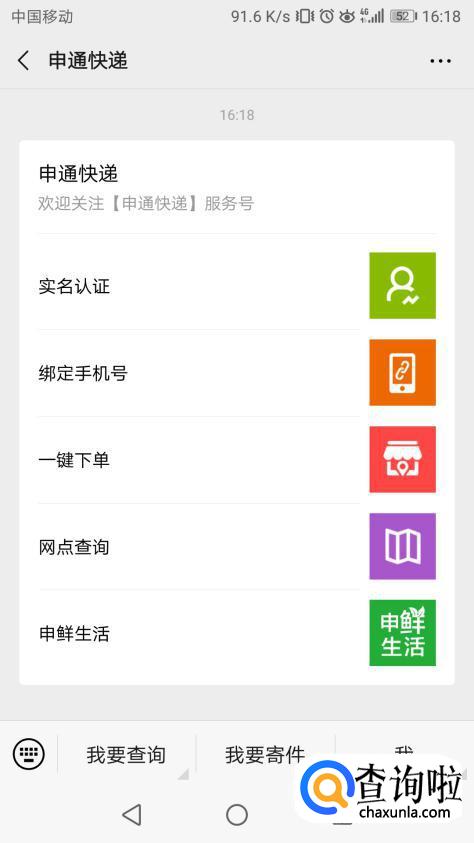 进入到申通公众号后找到下方我要查询入口。