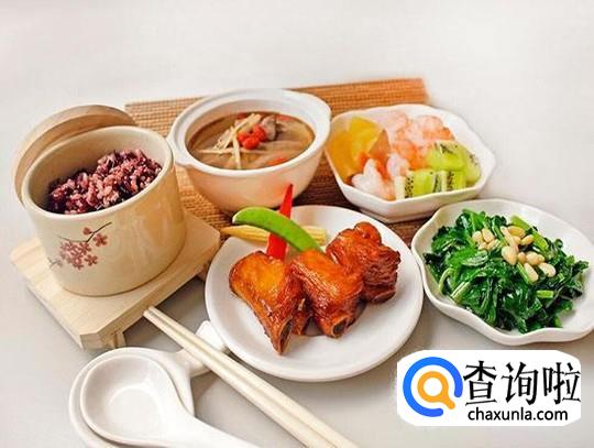 午餐要荤素搭配,有汤也要有肉,不要光喝汤不吃肉,汤根本提供不了多少营养。花生炖猪脚+抄白菜;小鸡炖蘑菇+抄上海青;猪小排炖山药+蒸南瓜等都是午餐比较好的食物。