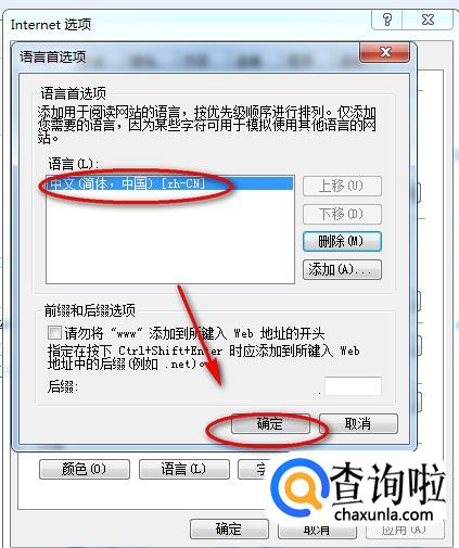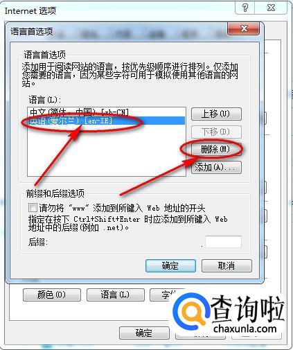 删除英文语言后,再点击下方的“确定”按钮即可。