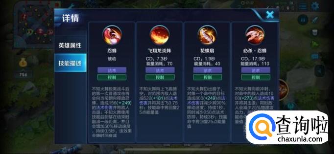 不知火舞的非常消耗能量,所以技能尽量不要空,命中后有一定的能量回复,