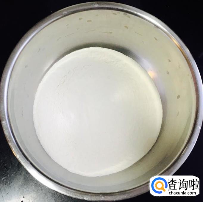 案板铺撒干面粉把醒好的面团用擀面杖擀成厚面皮