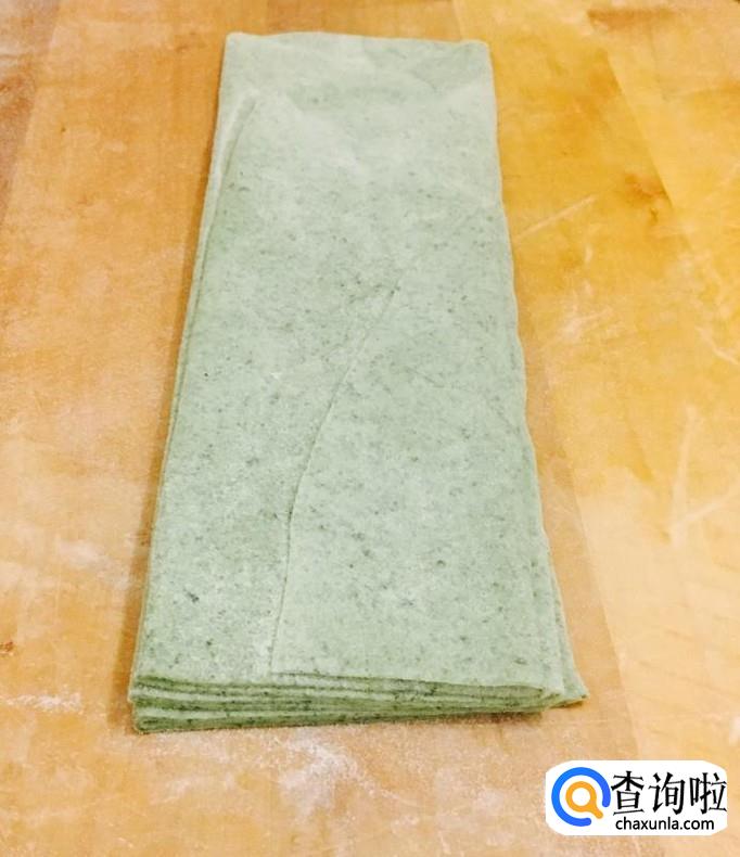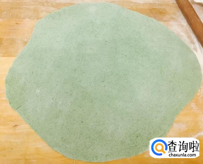 面皮上铺撒一层干面粉,用擀面杖卷起面皮重复推擀至自己喜欢的厚薄即可