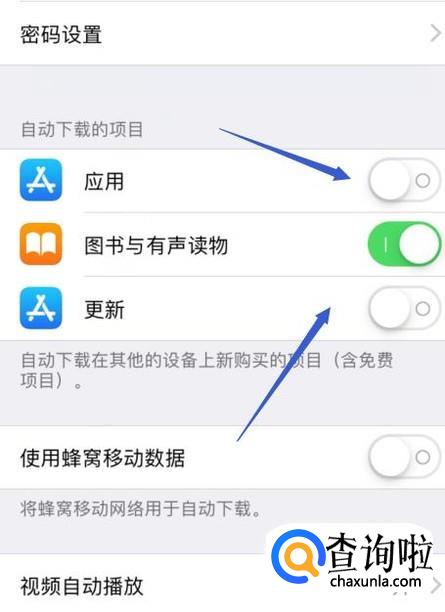 在“iTunes Store与App Store”页面,将“应用”和“更新”关闭即可。