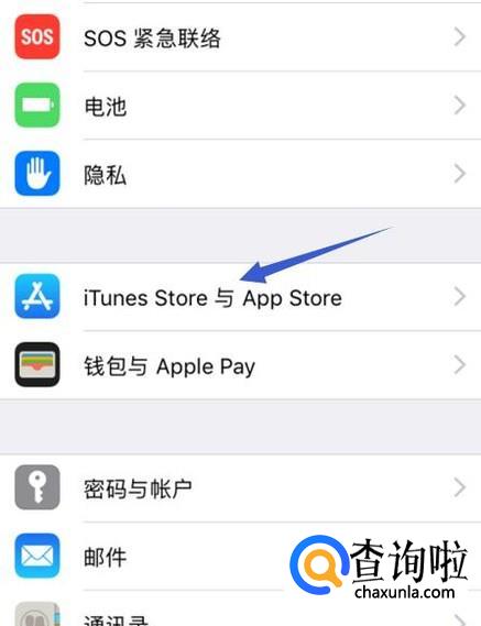 在设置页面下滑,点击“iTunes Store与App Store”选项 。