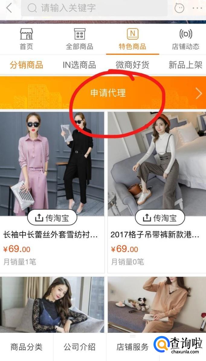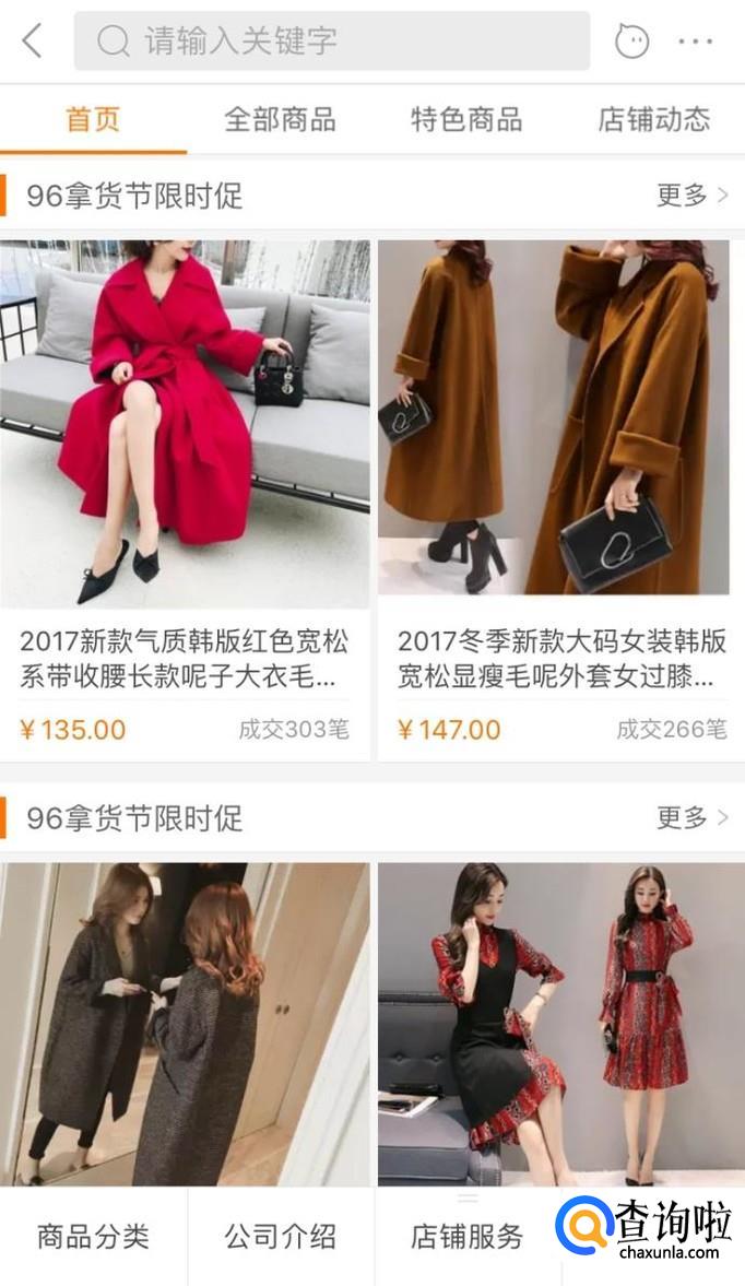 打开阿里巴巴app,选择一家你认为价格合适,有意愿成为分销商的店铺。这里我以某服装店为例。