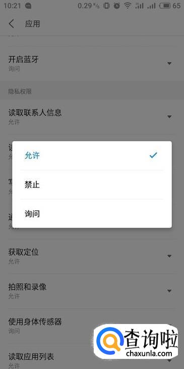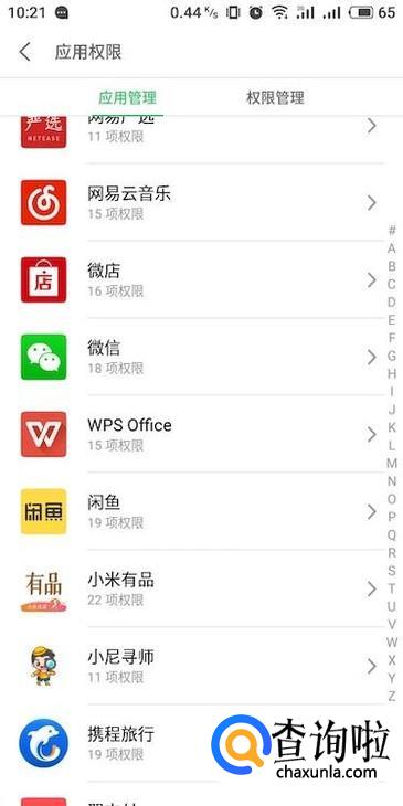 进入应用权限界面,在应用列表中点击“微信”进入。