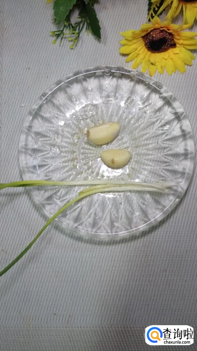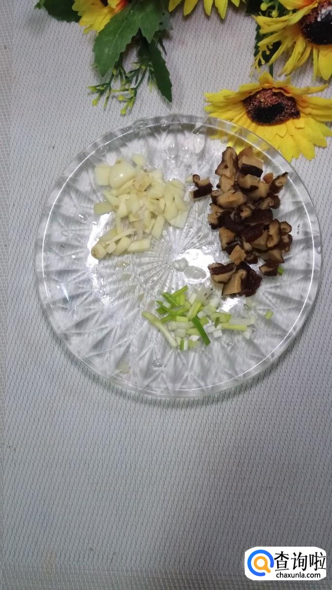 准备一个南瓜头,洗净后,中间挖洞备用。准备适量香菇,用清水泡发。再准备适量小葱和蒜,洗净备用。