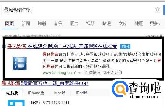 那么,如何预约购买暴风魔镜呢?首先,我们打开任意浏览器,搜索暴风影音,点击后面带有蓝色官网标志的网页。