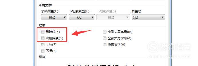 在【效果】栏可以看到【删除线】的选项,将其勾选;