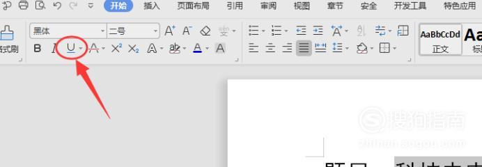 在“开始”栏点击如图所示的下划线图标;