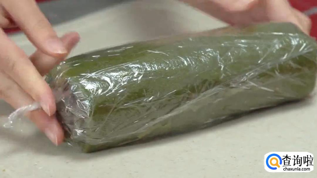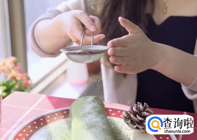 裹好的毛巾卷可以用保鲜膜包起来,防止变形。要吃的时候,将其从保鲜膜中取出,撒上一层抹茶粉,切成块即可食用。