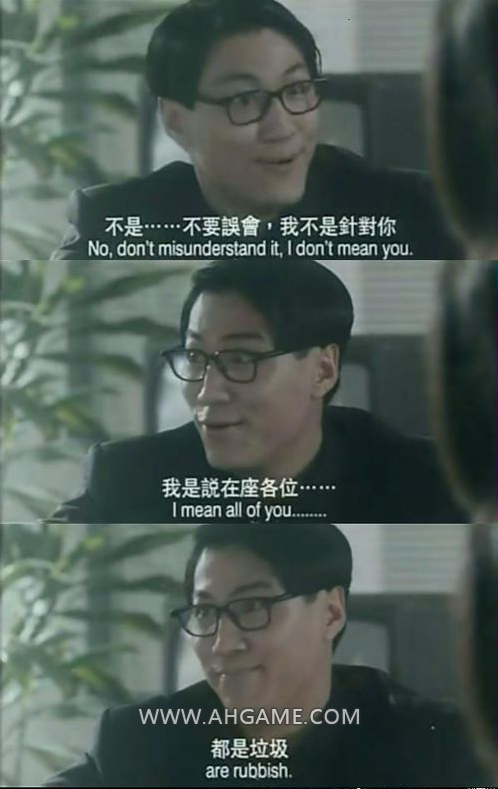 周星驰电影《破坏之王》中有这样一个桥段就是在学校举行的会议中,跆拳道大师兄断水流(扮演者是林国斌,著名武师),对在座所有人说:不要...不要误会,我不是针对你,我是说在座各位都是垃圾。