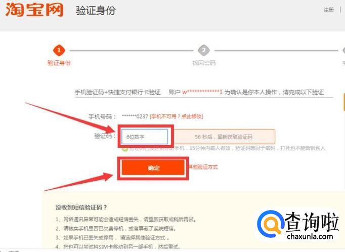 点击获取验证码,手机收到验证码之后,填写对应的验证码之后点击“确认”