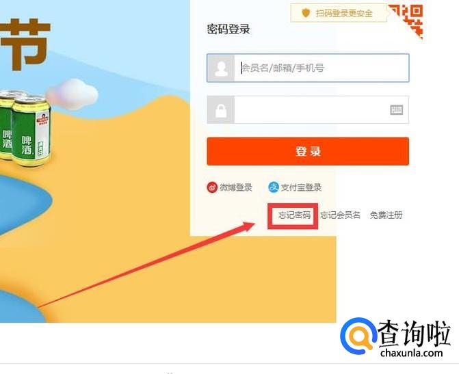 根据页面提示输入自己的淘宝账号注册时使用的“会员名”或“手机号”或“邮箱”(任选一个即可),摁住鼠标左键,刮出两只小鸡验证,最后点击确认。
