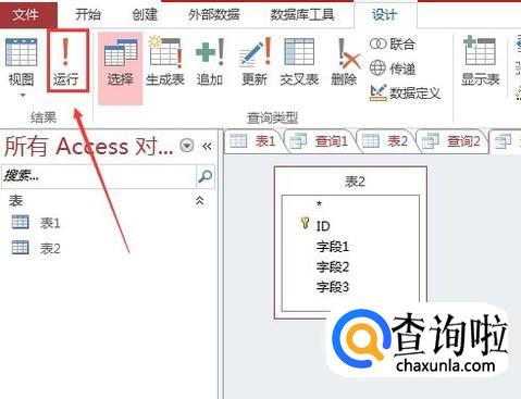 之后点击查询模块的“查询设计”按钮,此时会跳出一个表格的选择窗口。