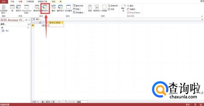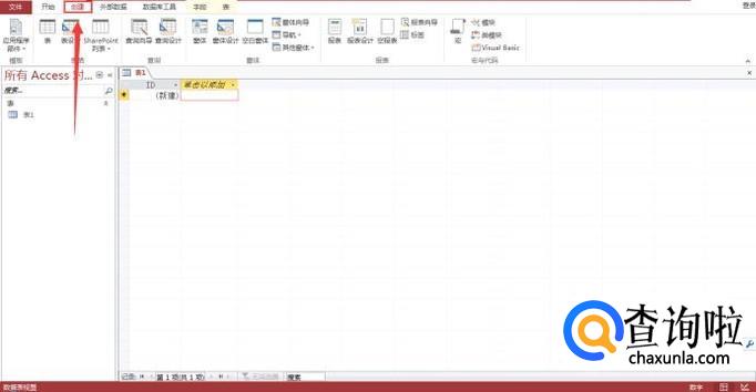 打开电脑端的Access数据库,点击菜单栏上的“创建”按钮。在此之前需要把准备查询的表添加到数据库中。