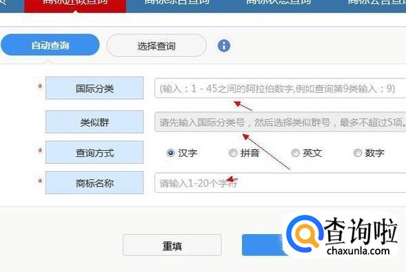 然后就进入到这个页面,在输入框中输入自己想要注册的商标,然后点击查询,就可以知道是否有类似的商标了。