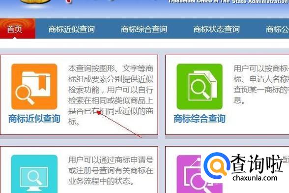 点击我接受以后就自动进入下面这个页面,想要查询商标是否被注册过,就要使用第一个功能,商标近似查询;
