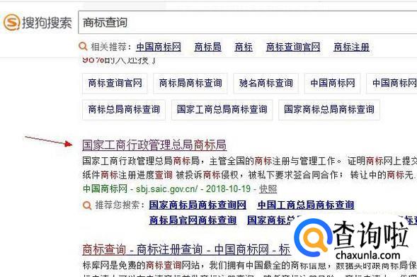 使用搜狗浏览器搜索商标注册,下滑找到中国商标网的官网,然后点击打开;