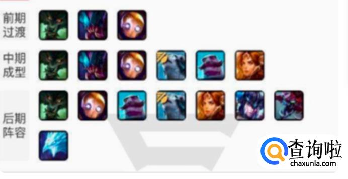 中期英雄选择:VN,盖伦,艾希,布隆,日女。