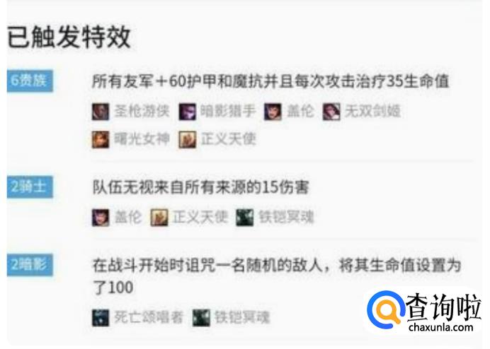 六贵族:所有友军都能获得100点护甲和普攻35点生命值回复(VN,盖伦,剑姬,卢锡安,日女,天使)。