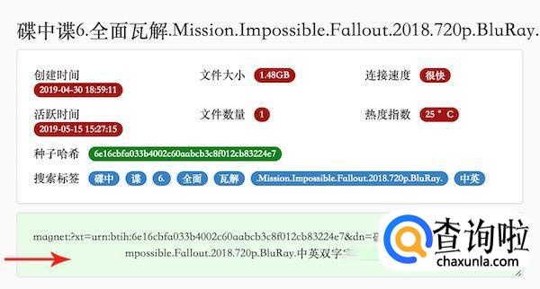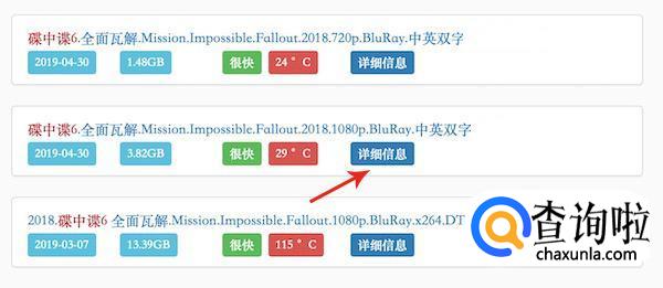 这里我们例如搜索碟中谍6,在搜索结果中,我们就能够看到很多番号链接,点击“详细信息”进入相应的详情页面。