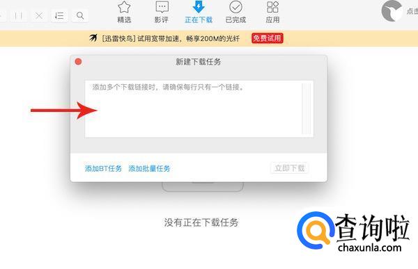 进入新建下载任务界面,在弹框中粘贴我们刚才复制下来的链接,然后点击“立即下载”