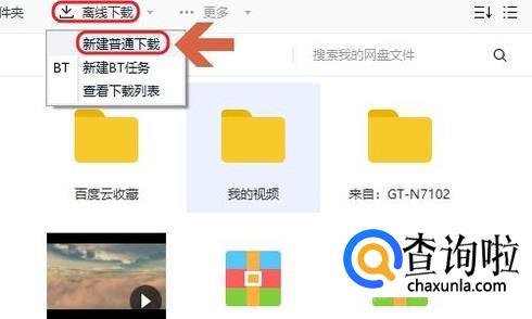 大家切勿将迅雷下载链接、磁力链接以及BT这三者搞混了,一般来说链接前面是magnet的就是代表磁力链接,我们应该复制它;如果打算用百度网盘下载该链接,那么如图依次找到“离线下载”-“新建普通下载”;