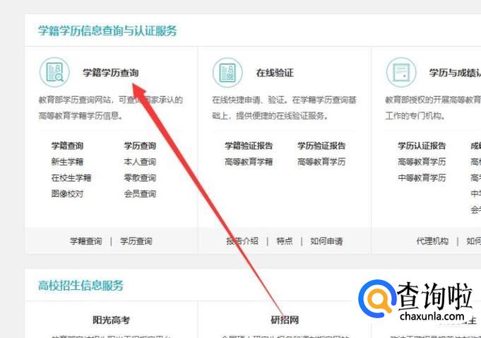 进入之后,点击“学籍学历查询”,如图所示。