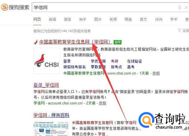 打开电脑,进入搜狗搜索主页面,搜索“学信网”,点击并进入。