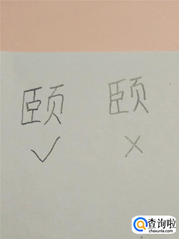 颐字左半边里面是个扁扁的口,不要把这个口字左边的一小竖省略掉,那样就不对了。