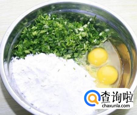 准备鸡蛋、面粉、韭菜。