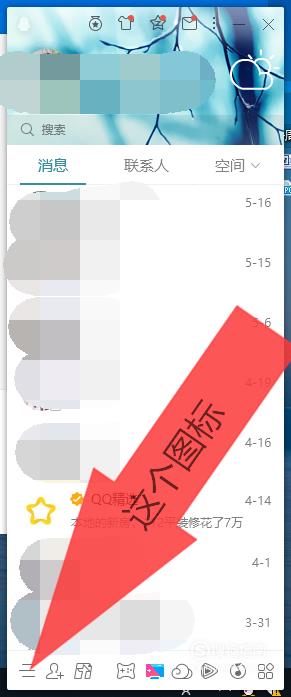 在PC端登录一个QQ,在QQ主页面找到并点击主菜单图标。