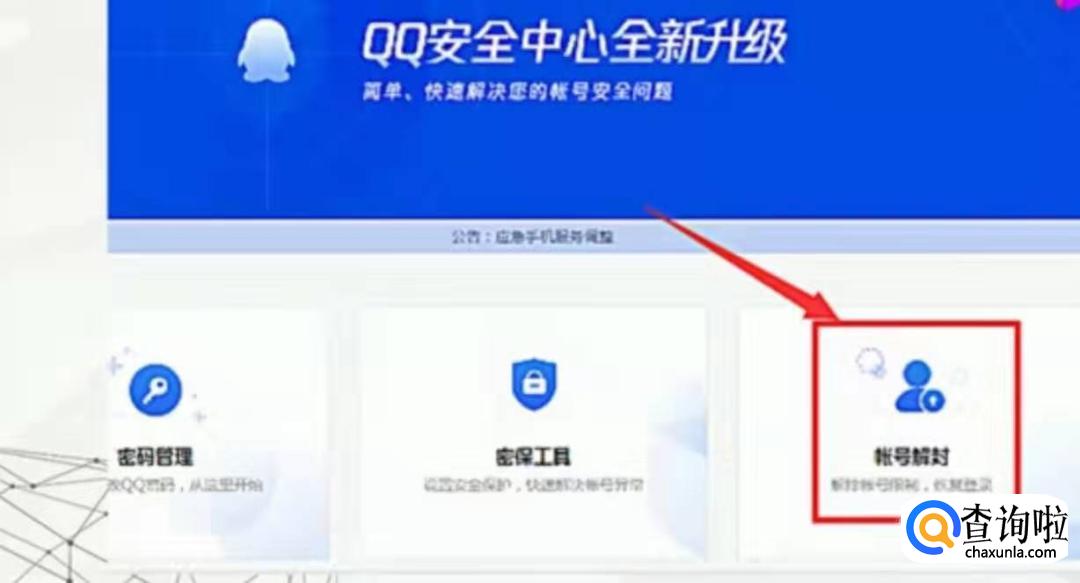 进入安全中心界面后在网页右下边找到“账号解封”,然后点击进入。