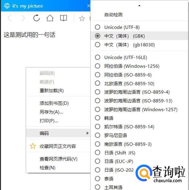当然,更改浏览器的编码也是可以的,更改为GBK,对应的就是ANSI格式,文字也能正常显示