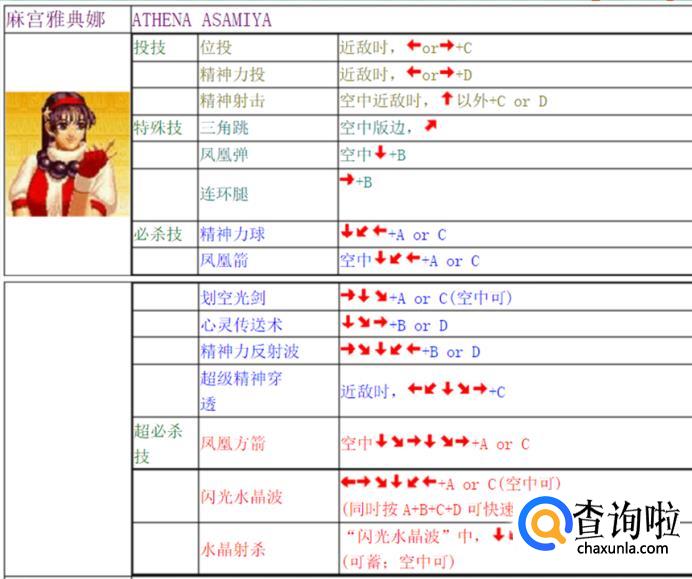 超能力队出招表:麻宫雅典娜、椎拳崇、镇元斋。