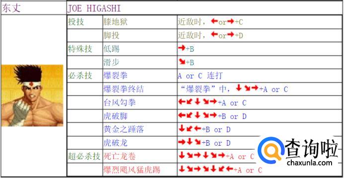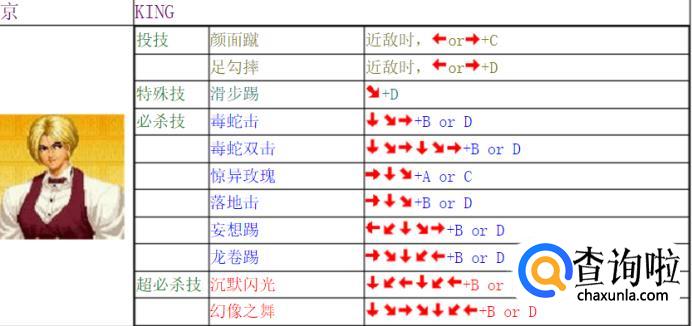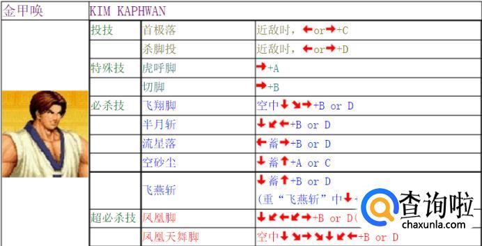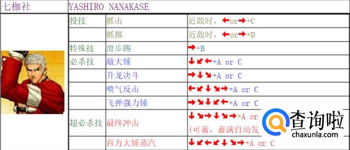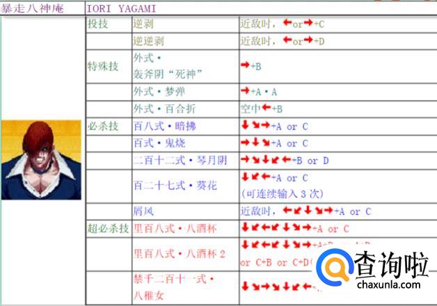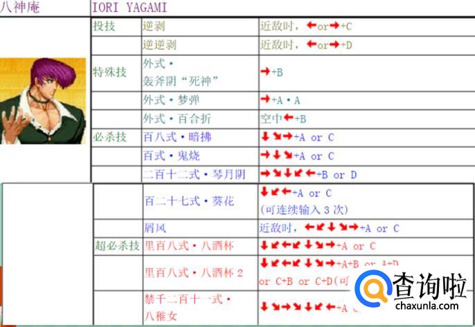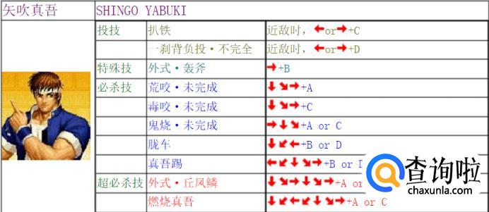 编辑专用人物出招表:八神庵、矢吹真吾。