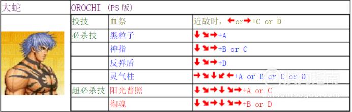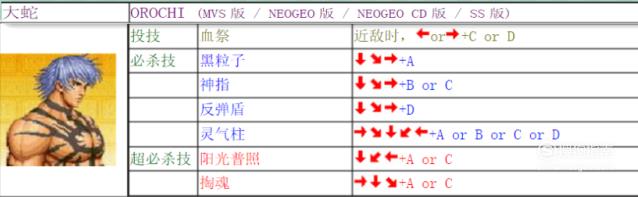 BOSS出招表:大蛇(OROCHI (MVS 版/ NEOGEO版/ NEOGEO CD版/ SS版))、大蛇(OROCHI(ps版))