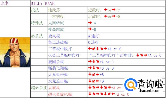 97'特别队出招表:山崎龙二 、布鲁玛莉、比利。