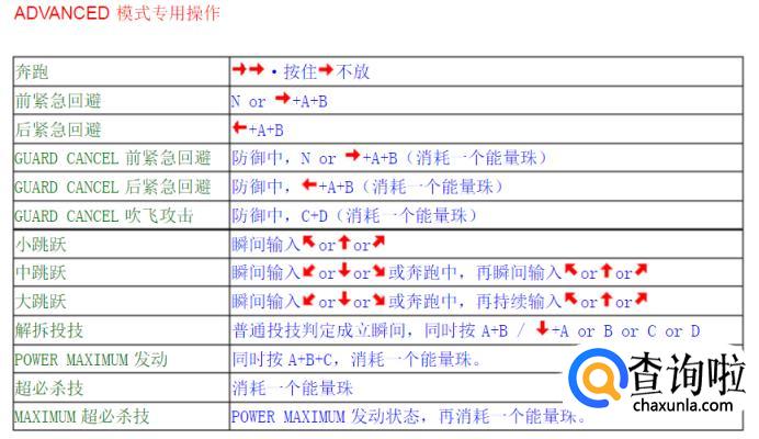 基本操作键介绍,出招表,ADVANCED、EXTRA模式共通操作。