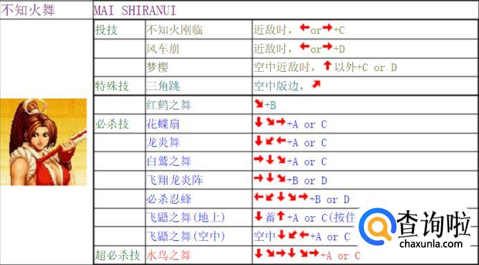 新女性格斗家队出招表:京、不知火舞、神乐千鹤