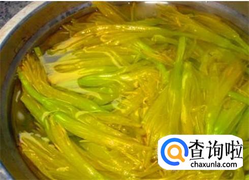 锅里烧开水,加上一些食盐,食盐溶化之后关火,将黄花菜投放进去,不断的焯水,让黄花菜变得软一些就算是焯好了,直接捞出来放进冷水中浸泡一会儿捞出来控干水分。