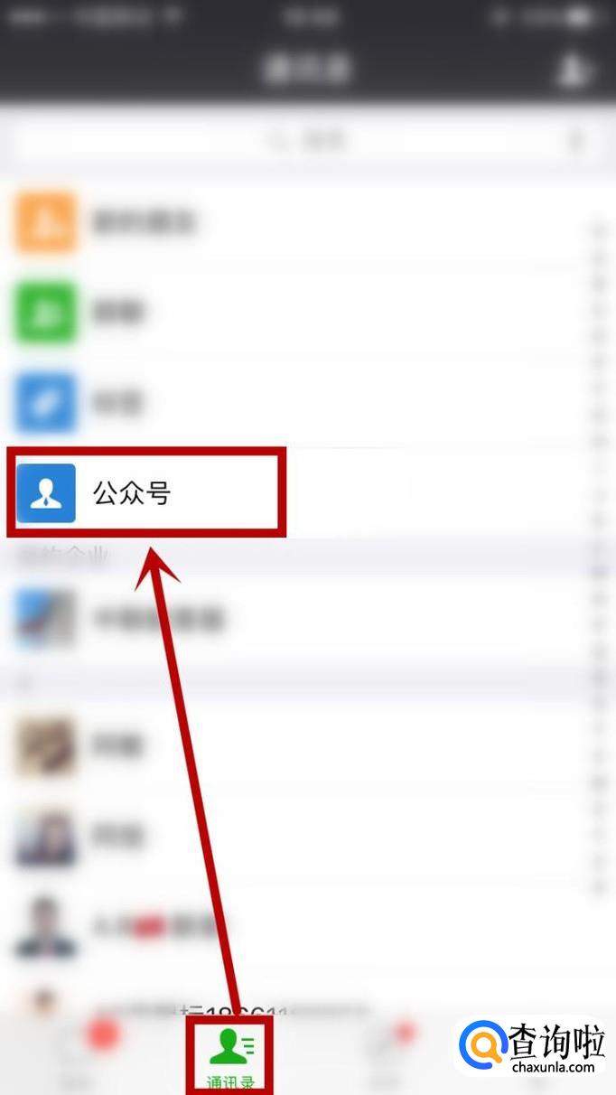 打开微信后,点击朋下方图标,找到:公众号
