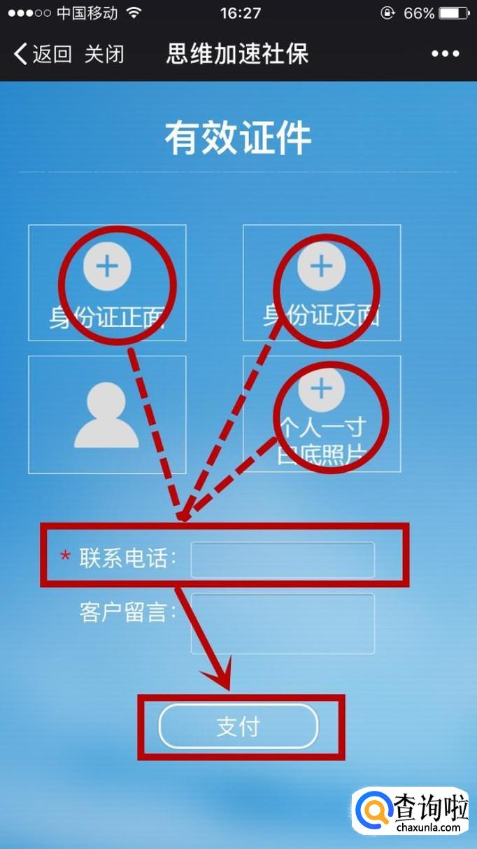 然后就会让你上传:身份证正反面、一寸照片,填写电话等信息,完成后点击支付即可。