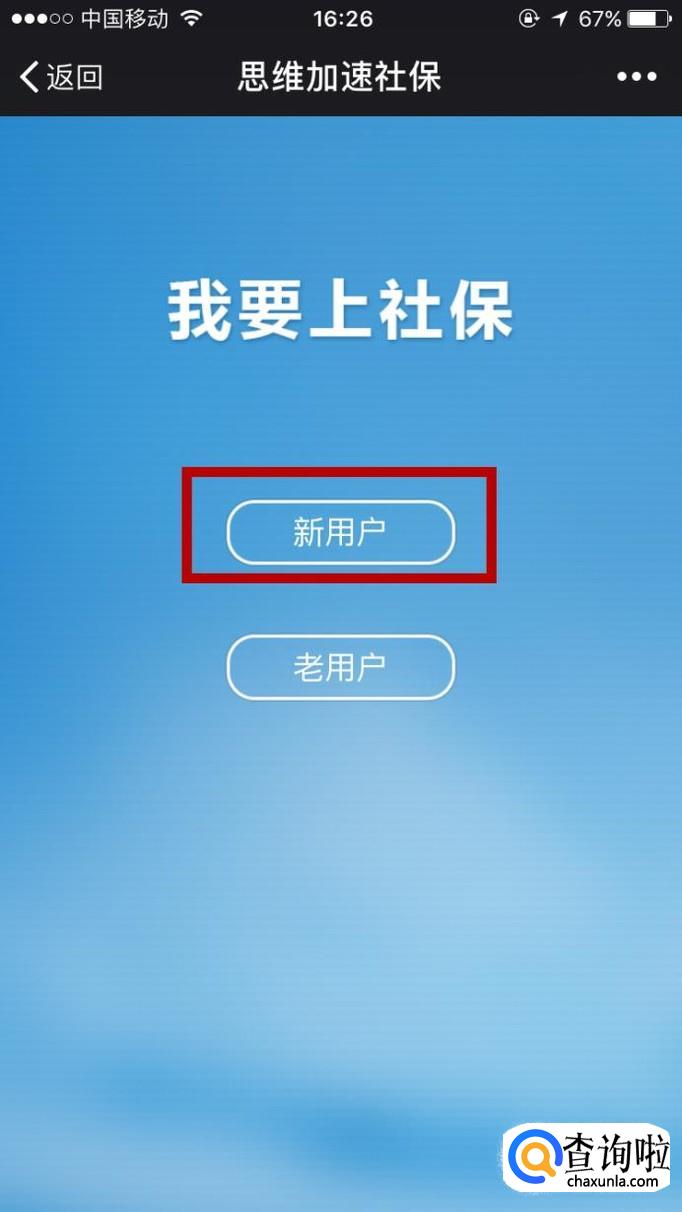 会弹出我要上社保的界面,如下图,选择:‘’新用户”