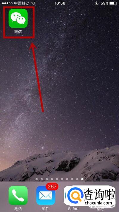 首先在手机桌面找到微信并点击它”,如下图所示。