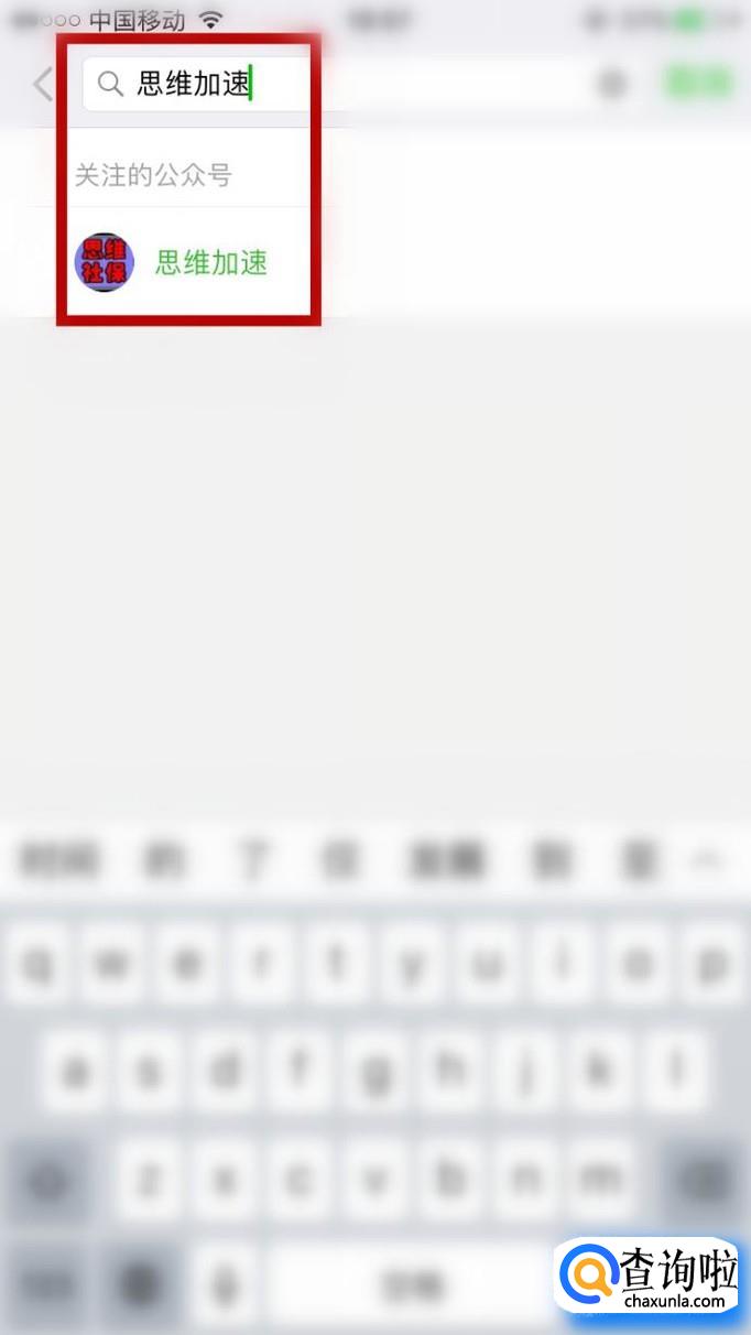 点击公众号,接着点击搜索框输入“思维加速”,如下图所示。
