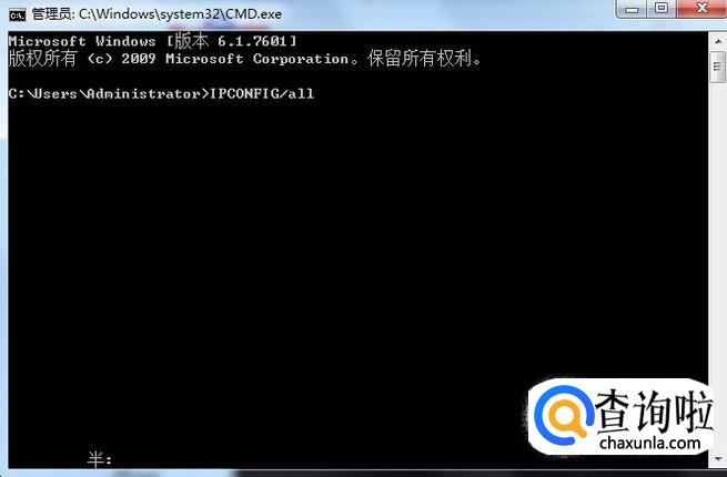 然后输入ipconfig/all 并点击回车键,如下图所示。