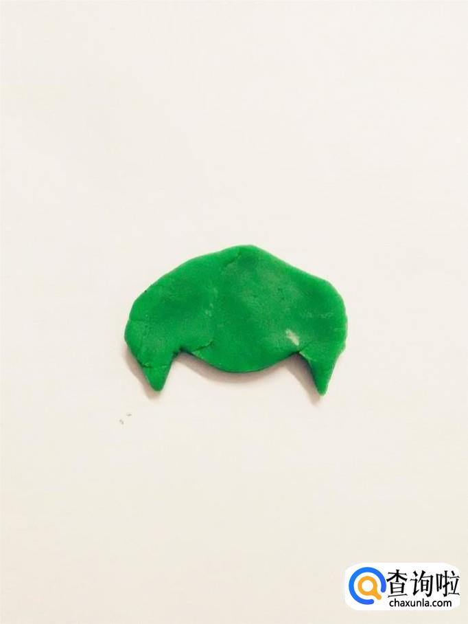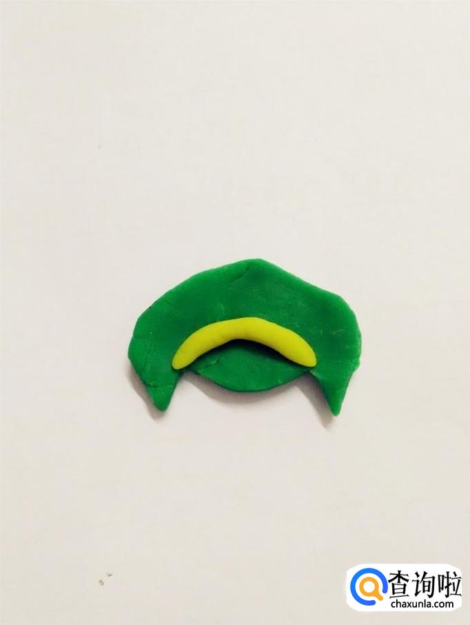 用一大块绿色,捏成一个象蝙蝠一样的形状,当作军人的军帽。