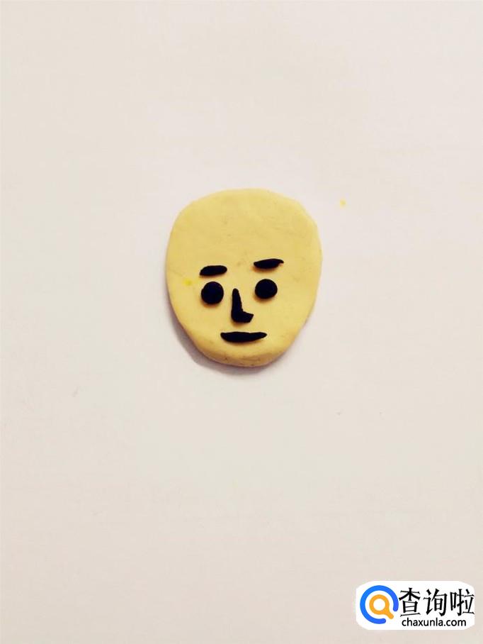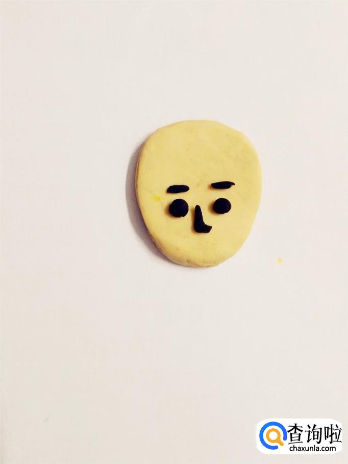 先用一块肉色彩泥捏成鸡蛋的形状,当作军人的脸。